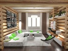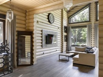 Стените в къщата ще бъдат характерни, текстурирани, които рядко се подрязват с нещо друго.. Собствениците обикновено се опитват да запазят естествеността на дървото. Вярно е, че е възможно да се направят някои промени, без да се повреди основата на къщата. Например, протонирани стени от трупи. Можете също така да рисувате, избирайки най -екологичните формулировки.
