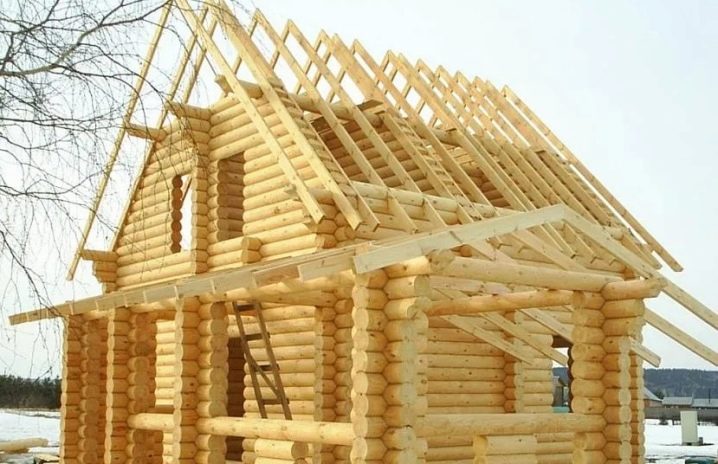 - Монтаж на покрив. Не е необходимо да поставяте Mauerlat, можете да изпратите гредите директно към трупата. Между гредите се поддържа разстояние от 600 мм. Гредите са фиксирани към плъзгащи се опори. След това се полага хидроизолация и едва след това щайгата. Остава само да се покрие с довършителни материали.