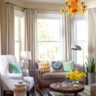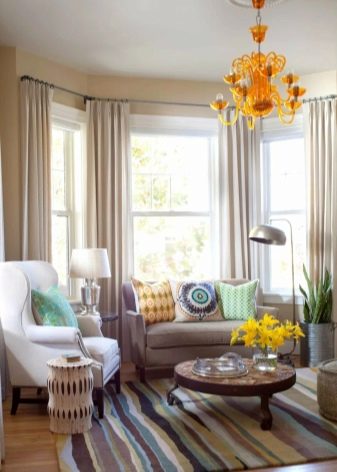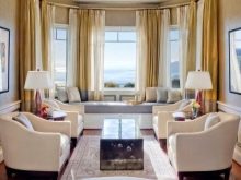 Основната област на еркера са красивите панорамни прозорци, така че е важно да обърнете внимание не само на боядисването на стените или закупуването на мебели, но и на избора на правилните завеси..