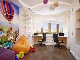 Доброто осветление през панорамни прозорци е отлично условие за поставяне на бюро, където детето може да си свърши домашните. Ако в семейството все още няма ученици, можете да организирате отделна зона за игра за деца в нишата..