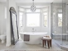 Еркерът на банята може да побере импровизиран спа център под формата на рафтове с разнообразни кремове, ексфолианти и друга козметика. И още една необичайна опция за дизайн ще бъде буйната зимна градина точно до снежнобялата баня. Покритието с плочки ще ви позволи да не се страхувате от изтичане на саксии и вани при поливане.