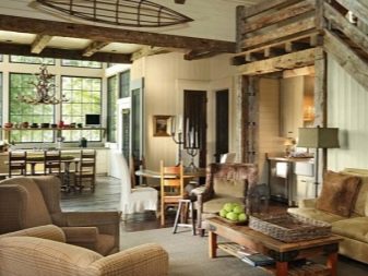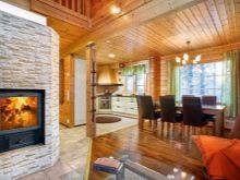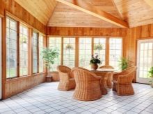 За интериорния дизайн на дървени къщи е обичайно да се избират леки материали, които имат добра пропускливост на въздух и влага.. Не трябва да забравяме, че напълно запечатаните материали водят до появата на парников ефект вътре в помещението, дори и да се използват за външна декорация.. Трябва да се вземе предвид и степента на нагряване на помещенията. Така че завършването на неизолирана лятна къща трябва да има повече топлоизолация, отколкото в случай на пълноценна сграда, която се използва целогодишно. Като се даде предпочитание на леки материали, ще бъде възможно да се остави натоварването на стените и основата на почти непроменено ниво и следователно да не се провокира тяхната деформация.