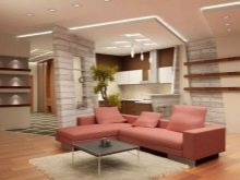 - Интериорът изглежда луксозен, в който стените и подът са декорирани с материали от същия цвят. На пода може да има ламинат или паркет, а по стените – облицовка.