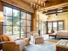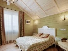 Обичайно е да се подрязват тавани в дървени жилищни сгради с дъски или гипсокартон. Тези материали ви позволяват да скриете неравностите на дървената къща и да създадете идеално равна повърхност.. В интериора на таванско помещение и провинция обикновено не е обичайно да украсявате тавана с нещо: той е запазен в първоначалния си вид и всички сили са насочени към поддържане на дървесината такава, каквато е била по време на строителството.