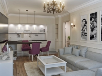 Ако живеете сами или с другата си половина, тогава втората част от стаята може да се приеме като хол. Най -добре е, ако по този начин ще споделите модерно студио, а не съветска однушка. Въпреки че има много интересни идеи и за двата варианта..