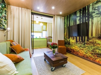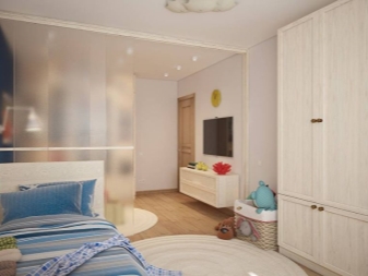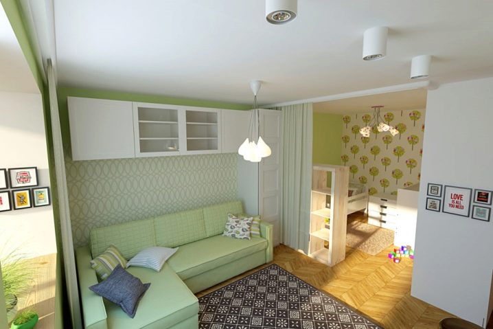 Много често младо семейство трябва да живее с малко дете в едностаен апартамент. За да не изпитате дискомфорт, трябва да разделите стаята на две основни зони. Едната част от стаята ще бъде детска зона, а втората ще бъде място за отдих на родителите..