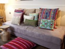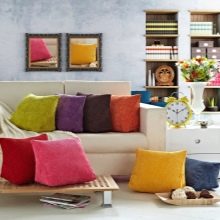 Също така, когато завързвате части, можете да поставите както обикновени, така и цветни възглавници в стаята, като правилно ги комбинирате помежду си.