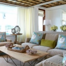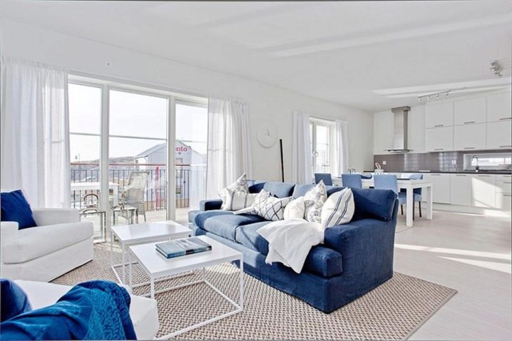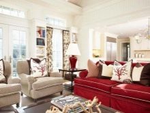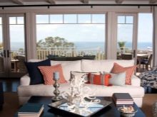 - за свеж интериор в морски стил ще бъдат подходящи аксесоари в сини, сини и зелени тонове, използват се ленени и памучни тъкани с рисунки на кораби, морски звезди и черупки.