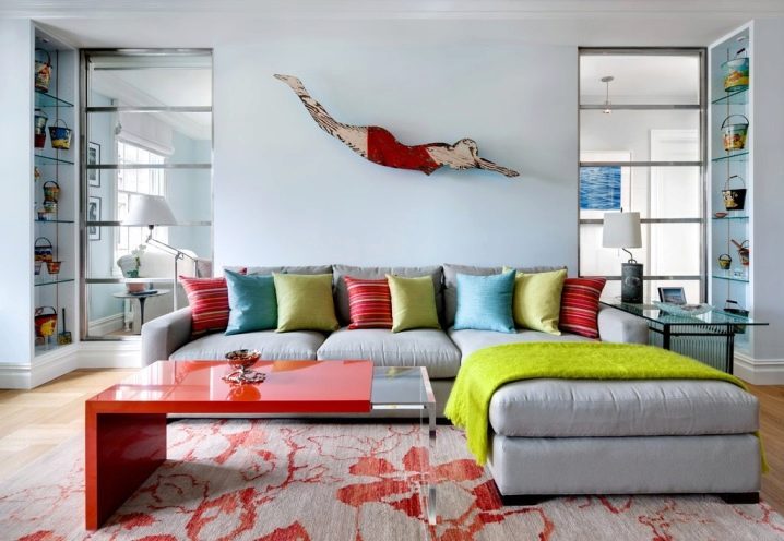 Основното е да се спазва общият състав. На съвременния пазар можете да намерите декоративни възглавници за всеки вкус. Любителите на ръчно изработената декорация ще харесат ръчно изработени продукти с бродерия и дантела. Има и още шокиращи опции в изобилие: символи, лозунги, много шокиращи изображения и приложения. Простите дизайнерски решения под формата на декоративни възглавници ви позволяват да разредите скучния интериор на всеки апартамент, да добавите нотка на hygge към него, да преобразите стара селска къща и да омекотите строг бизнес офис.