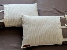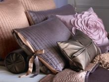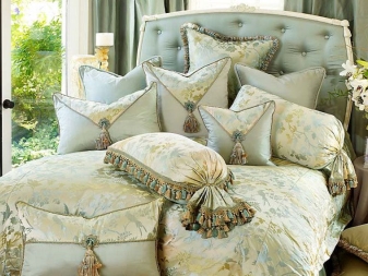 Текстилът за декоративни корици се използва изключително естествен. Предпочитат се калъфки за възглавници от лен, коприна и памук. Що се отнася до декоративните елементи на възглавниците, се допускат и синтетични материали. Когато избирате цвета на продукта, трябва да обърнете внимание на пастелни нюанси, меки и пясъчни тонове, пепел, бежово, бледо розово или синьо.