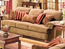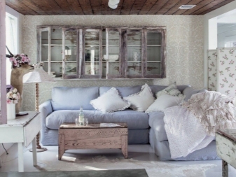 Тук има и такива елементи като рюши и волани с дантела, пера, пискюли. Декоративна възглавница, бродирана с мъниста или пайети, ще бъде ярко допълнение към хола в селски стил.