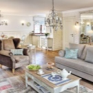 Всекидневната, декорирана в пастелни цветове, може смело да се освежи с ярки тюркоазени акценти върху дивана и фотьойлите. Мътният сив тон, който се оказа преобладаващ в стаята, се отличава добре с розови декоративни елементи, особено след като модерният цвят на прашна роза днес.