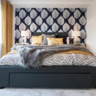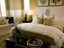 - Създаване на интериор спални, където възглавниците трябва да бъдат разположени в главата на леглото, е изгодно да се купуват покривала, които са в хармония с фона на стените или текстурата на завеси, подходящи за текстил. Практично за използване на възглавници с двустранен отпечатък.