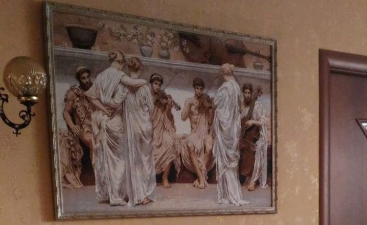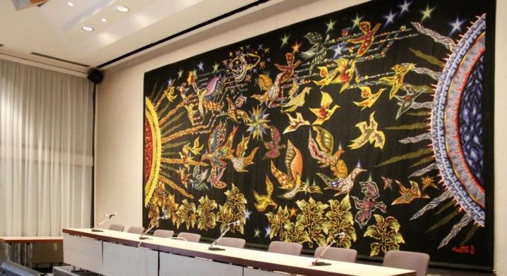 В практически смисъл такова придобиване също ще бъде полезно. Платното има антистатични свойства и не привлича прах, тъканта запазва добре формата си, не се деформира или деформира и се почиства лесно. Гоблените са подходящи за всеки стил в интериора, основното е да изберете правилната рисунка.