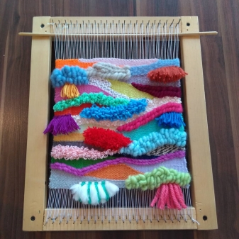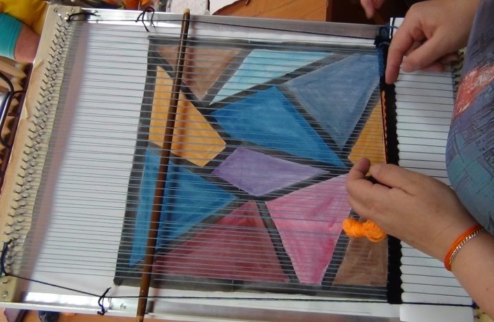 Първоначално обикновена рамка се използва като основен инструмент за създаване на продукт, върху който се издърпват нишките на основата. За да се постигне желаното напрежение, те използваха пирони, забити в рамката или равномерно направени специални дупки от вътрешната страна на самата рамка. Вътрешна нишка, навита на макара или просто навита на топка, се хвърля между нишките на основата и след края на реда се заковава с пръсти или с помощта на специална бъркалка.