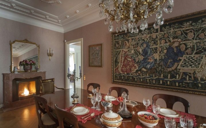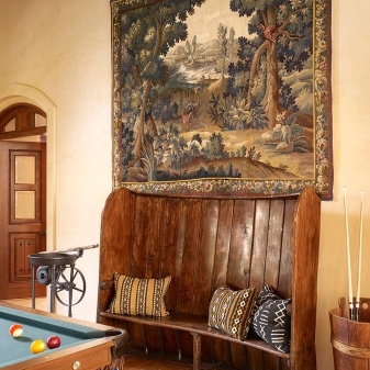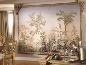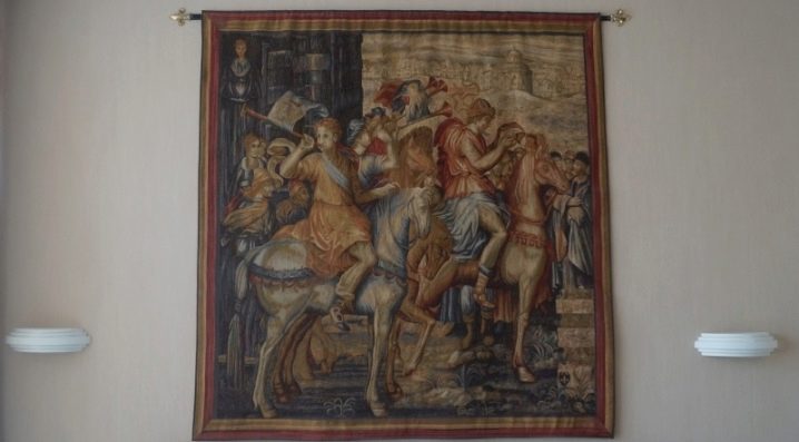 Що се отнася до гоблените, първото нещо, което представяме, е красив тъкан на стената. Такава картина може да бъде окачена в обикновен апартамент, но в голяма селска къща ще изглежда много по -хармонично. Освен това производителите преди повече от век са измислили ансамбли от 3, 5 или 6 гоблена, обединени в една тема. Това решение ви позволява да поставите цяла история по стените: за подвизите на рицарството; за голяма, но нещастна любов; за походи и големи завоевания.
