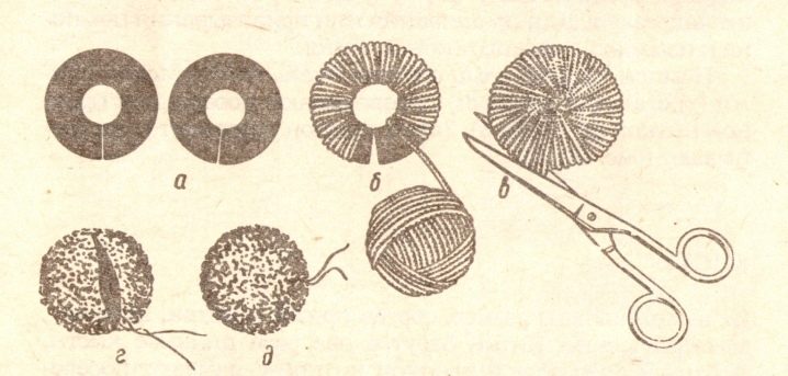 Методът за правене на „топка“, позната на всеки от детството с помощта на картонени заготовки, върху които се навива прежда, след това се връзва в центъра и се нарязва между картонените заготовки, последвано от тяхното отстраняване. Доста трудоемък метод, който изисква много свободно време и търпение, както и купища еднакви заготовки. Такова одеяло не може да се нарече надеждно, тъй като няма солидна основа. Всички фрагменти от монтажа са фиксирани един към друг с двойна нишка от прежда.