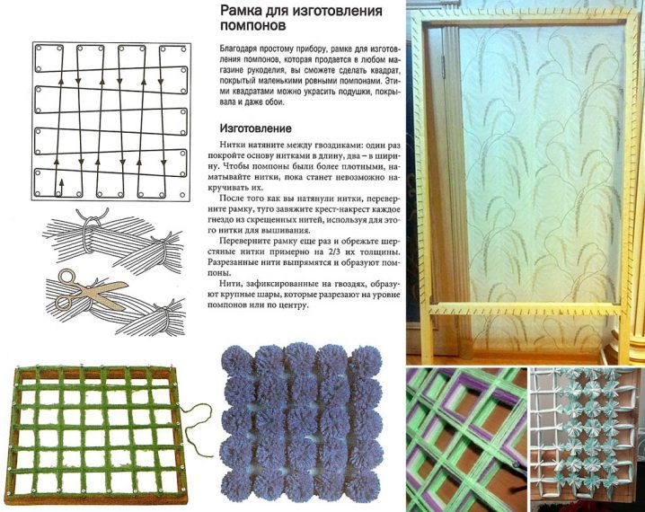 Най-интересният начин да създадете висококачествено, практично и издръжливо одеяло е да сглобите одеяло с помпон върху рамката. Основната трудност се крие в производството на самата рамка с необходимия размер (уникална разработка на изобретатели-иглени), защото само собственикът на къщата може да направи това или да поръча. Такова устройство е съборени 4 дъски под формата на рамка, по краищата на които обикновените пирони са заковани на същото разстояние.