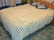 Между другото, при този метод е от значение използването на помпони с различни размери. Такова одеяло е особено издръжливо и надеждно..