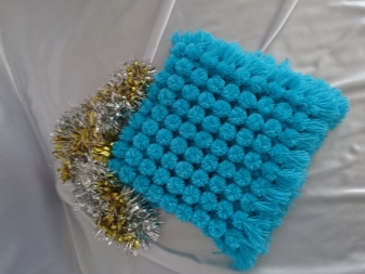 Създаването на одеяло се основава на навиване на голям брой слоеве прежда по дължината и напречно, прилепване на конеца към ноктите. Когато се достигне необходимия брой слоеве от прежда, тя се връзва в получената кръстоска, като здраво фиксира централните части на помпоните. Всичко, което остава, за да превърнете „пчелната пита“ в каре от помпони, е да преброите необходимия брой нишки и да ги нарежете заедно, както и да изрежете бримките на ръбовете. Здрави и издръжливи! За разлика от двете предишни техники на изпълнение, този метод ви позволява да правите висококачествени и пухкави помпони и те ще бъдат здраво закрепени към многослойна основа..