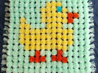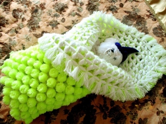В допълнение към обичайните геометрични опции под формата на едноцветни или контрастни продукти, опитни майсторки създават уникални карирани композиции за деца под формата на забавни животни (тигър, зебра, котка, калинка и др.). Такива продукти са много популярни сред децата, като за известно време стават уникален килим, макар и малък или просто плик, в който можете да увиете бебе, отивайки на разходка.