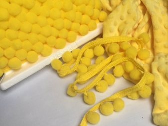 Ако преждата е плитка с готови помпони, правенето на одеяло с помпон е още по-лесно. Въоръжена с шевна машина, плитката се зашива една по една, като нанася ръба на плитката върху предишния ред. За да завърши композицията, ръбът е украсен с ресни или тапицерия..