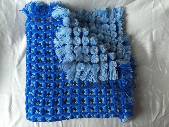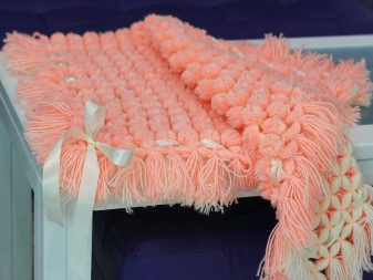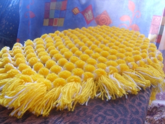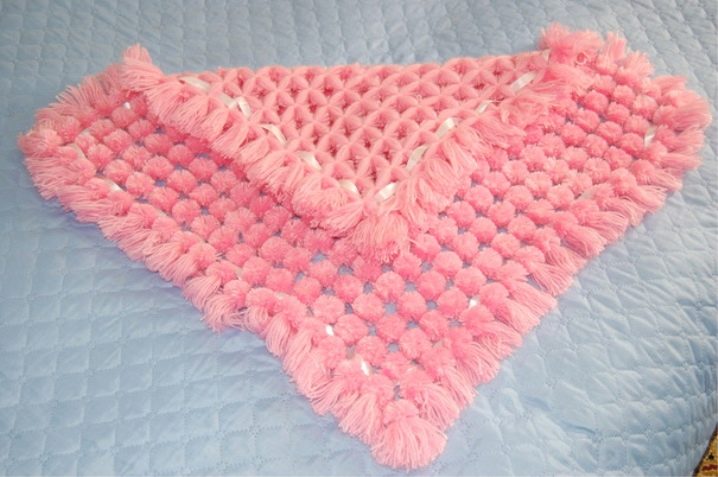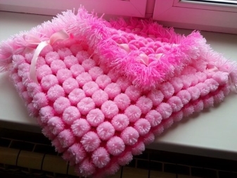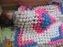 Между другото, при този метод е от значение използването на помпони с различни размери. Такова одеяло е особено издръжливо и надеждно..