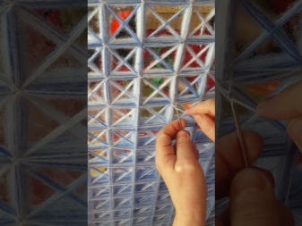 Методът за правене на „топка“, позната на всеки от детството с помощта на картонени заготовки, върху които се навива прежда, след това се връзва в центъра и се нарязва между картонените заготовки, последвано от тяхното отстраняване. Доста трудоемък метод, който изисква много свободно време и търпение, както и купища еднакви заготовки. Такова одеяло не може да се нарече надеждно, тъй като няма солидна основа. Всички фрагменти от монтажа са фиксирани един към друг с двойна нишка от прежда.