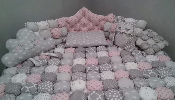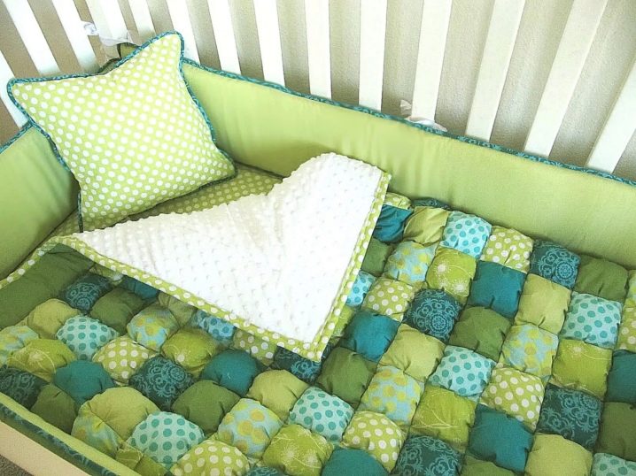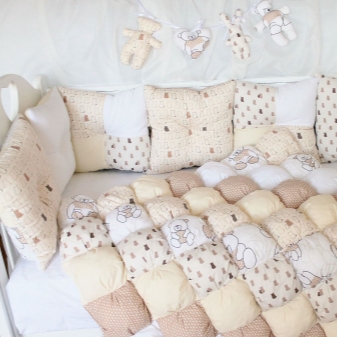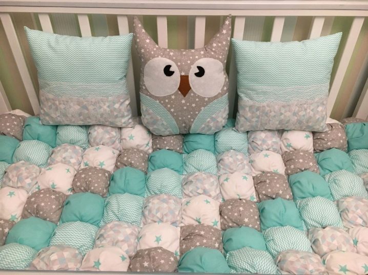 Комплект текстил от “бисквити” ще изглежда много хубаво – покривало и възглавници или покривало и меки страни в яслите.