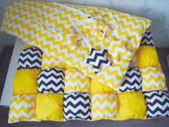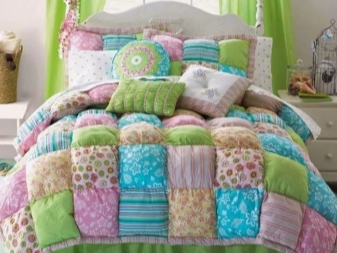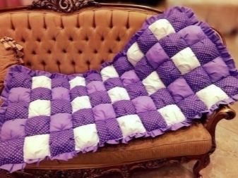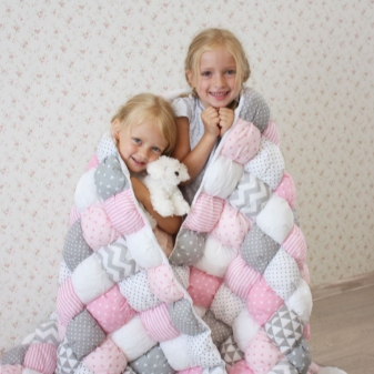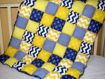 За производството на такива одеяла се използват съвременни интериорни тъкани. Избират се интересни разпечатки и цветови комбинации. Можете да съберете одеяло от обикновени тъкани, като излезете с красива и оригинална двойка, например синьо с жълто, синьо с червено, розово със сиво, жълто с кафяво.