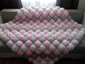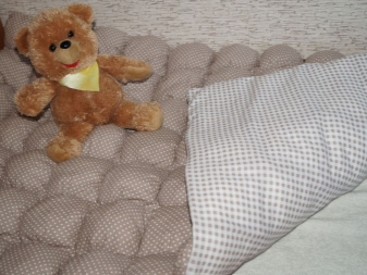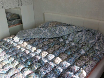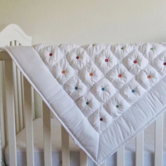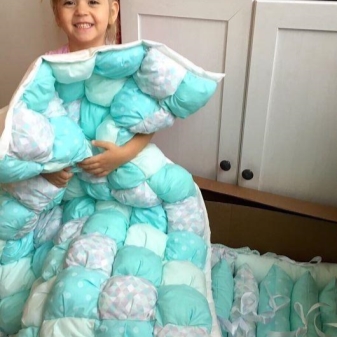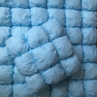 Сред недостатъците на този продукт е възможно да се отбележи високата цена (той се прави изключително ръчно и процесът не е твърде сложен, но изисква точност и трудоемкост). Средно голямо бебешко одеяло ще струва около 5000 рубли. Също така е причудлива за грижа – тя трябва да се измие с деликатни средства, да се изсуши в изправена форма, като се разстила всяка възглавница с ръце, за да не падне. Също така няма да е възможно просто да го гладите – ще трябва да използвате техниката “усилване на парата” или леко да ходите с параход.