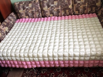 По дизайн одеялото „бонбон“ е по -скоро декоративно, отколкото функционално. Разбира се, за тях е възможно да се скрият, но все пак е жалко, защото може да се смачка и да загуби привлекателния си вид. Следователно основната цел на такъв продукт е покривало за легло.