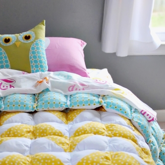 За момичетата цветът на одеялото може да бъде ярък или деликатен. Перфектен за точки, цветя, животни, детска рисунка и др..