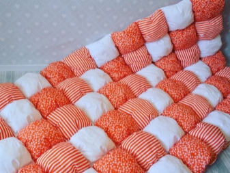 На теория одеялото от бонбон може да бъде плътно или можете да съберете възглавниците в произволен ред.. Но красив модел, който е лесен за оформяне като мозайка, ще изглежда много по -добре..
