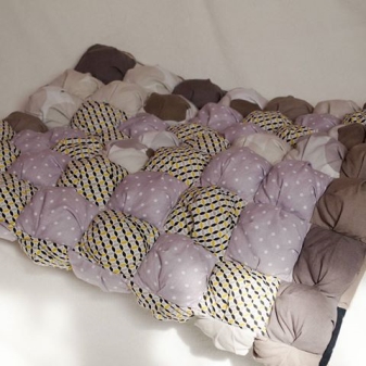 Платът за основата, върху която ще бъдат пришити подложките, може да бъде от всякакъв цвят – никой няма да го види. Можете да използвате съществуващия си чаршаф или завивка.