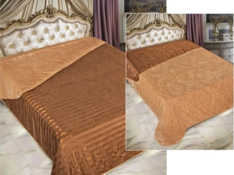 Моделът е изработен в един цвят. Тук можете да намерите бяло, бежово, прасковено покривало. Материали – изкуствен жакард и кожа. Обратимостта на продукта ще ви позволи да промените дизайна му в зависимост например от сезона. За лятото е подходящо да използвате гладка блестяща страна, докато през зимата топла и уютна козина. Подходящ за всеки интериорен стил.