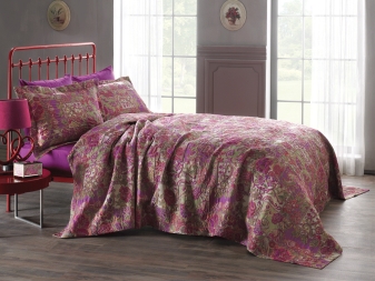 - По -скъпите модели често имат подложка от велур. Това прави покривалото по -дебело. Освен това предотвратява дори най -малкото подхлъзване на спалното бельо. Можете дори да се покриете с такъв продукт по време на почивката през деня, той ще се затопли и ще бъде доста приятен като одеяло..