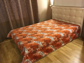 - Продуктът трябва да съответства на размера на леглото. Ако покривалото е малко и не виси достатъчно от леглото, спалното бельо ще бъде изложено и външният вид на такова легло ще бъде разхвърлян. Ако продуктът е твърде голям, това също ще доведе до небрежен вид на леглото ви. Ще се влачи по пода, събирайки прах. Освен това красивите гънки по ъглите на леглото няма да работят..