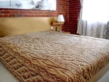 - “Верона”. Този модел е произведен в Павловски Посад. Има оригинален цвят, който имитира плетене на плитки. Изработен в кафяво. Това покривало ще изглежда страхотно в спалня в селски стил. Цена – около 2000 рубли.