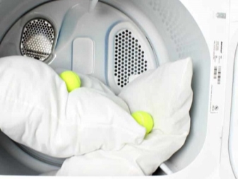 Разрешено е измиването на такъв продукт в пишеща машина, но при условие, че режимът е настроен на най -щадящия, не повече от 30, максимум, 40 градуса (в случай на силно замърсяване). Лека трудност се крие във факта, че в този случай е невъзможно да се използва автоматично въртене на машината: пълнителят незабавно се срутва и се натрошава на бучки, а самата възглавница се деформира, така че ще бъде невъзможно да се възстанови предишната й форма.