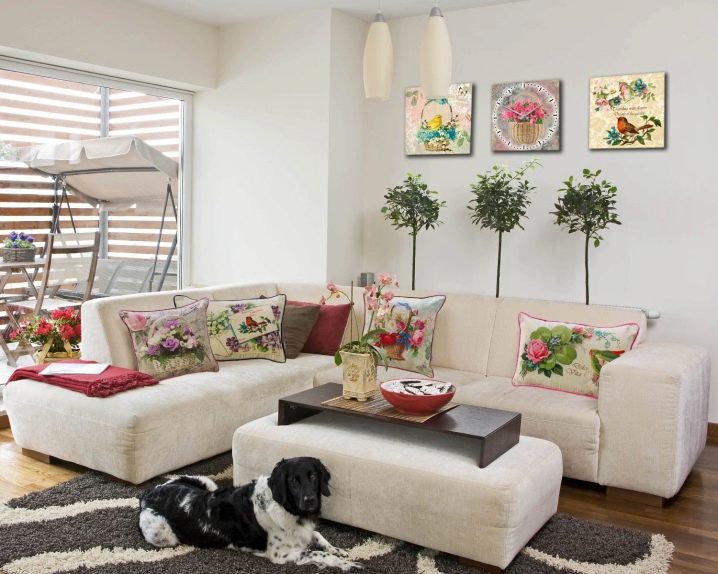 Добре подбраните покрития за гоблени могат да трансформират скучен интериор. Ярките възглавници, небрежно разпръснати по дивана, не само ще зарадват окото, но и ще направят стаята по -удобна..