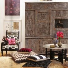 Интериорът е много украсен с репродукции на известни картини и архитектурни паметници. Ще бъде интересно да разгледаме дизайна на стаята, където има няколко детайла от гоблена. Освен това те трябва да се припокриват един с друг не само по цвят, но и по тематика. Например, ако стената е украсена с изображение на Колизеума, тогава можете да изберете колесници с коне или статуи на римски богове като изображения за кориците..