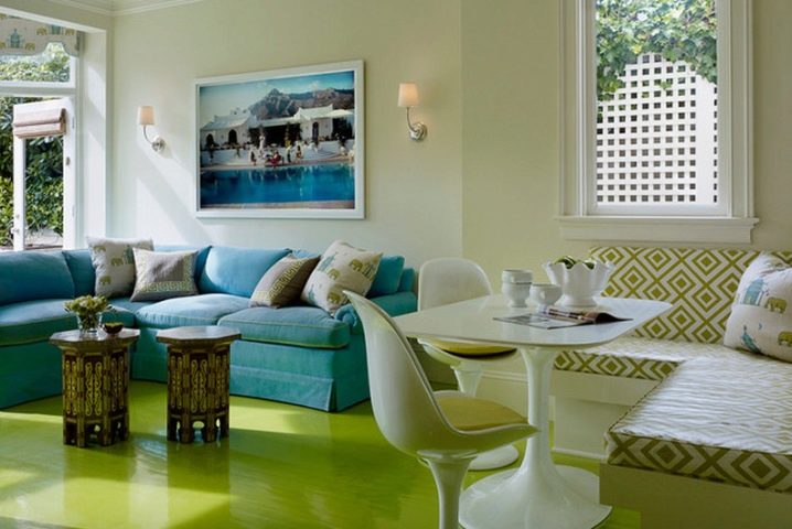 Не забравяйте, че можете да подобрите декоративните свойства на пода с блясък или стадо. Основните насоки при избора трябва да бъдат устойчивост на външни влияния и експлоатационен живот.