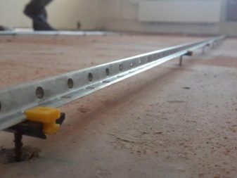 При монтажа на маяците лазерното ниво се поставя на мястото, подготвено за изливане на циментовия разтвор, след което лъчът се проектира. Поради това се определя нивото на линията на хоризонта. Следващата стъпка, на 30 см от стената, нарисувайте успоредна линия, по която се разстилат малки части от разтвора. След това върху получените купчини се монтира профил.