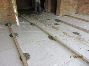 Първите два сценария обаче включват ненужни разходи. Можете да се отървете от тях, като направите решение със собствените си ръце. Преди да излеете, можете да поставите маяци, които ще помогнат за правилното изравняване на повърхността.. Разрешено е да ги демонтирате за един ден.. В противен случай замазката може да се повреди..