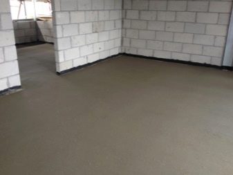 - Повреда на довършителните материали може да бъде предотвратена само 3 седмици след изливането. За да направите това, замазката е предварително покрита със специално уплътнение, върху което ще бъде възможно да се повдигне ламинат, паркет или друг материал..