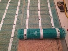 - След изсъхване на замазката се полага монтажната лента, върху нея – нагревателни кабели (рогозки);