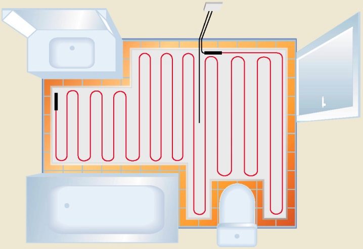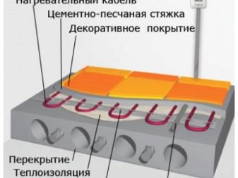 В основата на пода има резистивен (едножилен или двужилен) или саморегулиращ се кабел. Първата система обикновено има термостат, докато втората самостоятелно регулира температурата в зависимост от условията в помещението. Например, близо до прозорци и врати, отоплението е по -интензивно от зоните под мебелите..