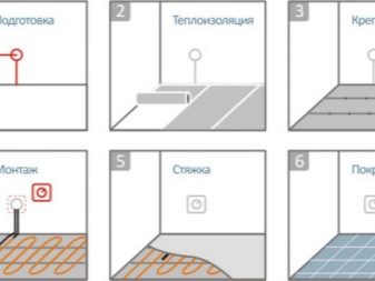 Стъпки 4 и 7 се пропускат при монтаж на рогозки и фолиа. Когато използвате инфрачервен под, слой от монтажна мрежа се полага между него и плочката.