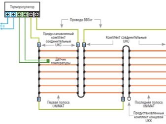 - Подложките се свързват последователно с термостата един по един, след което се монтира заземяването.